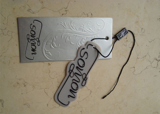 Habillement de luxe imprimé fait sur commande Hang Tags Embossed Silver Foil de papier emboutissant le logo
