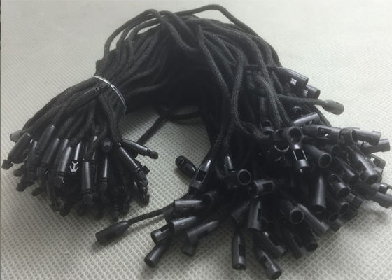 Étiquette en plastique blanche avec chaîne noire, étiquette suspendue avec fermeture de balle